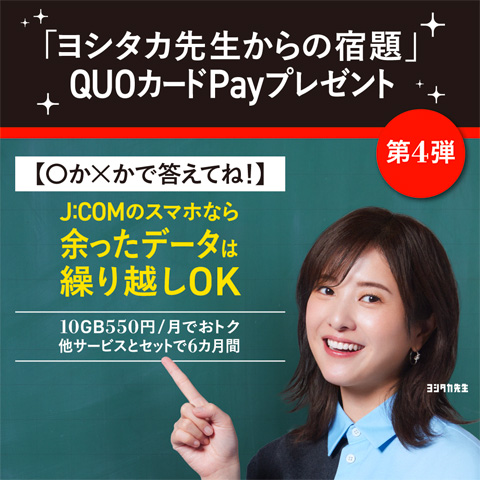 J:COM MOBILEに関する「ヨシタカ先生からの宿題」に答えて、QUOカードPayを当てよう!